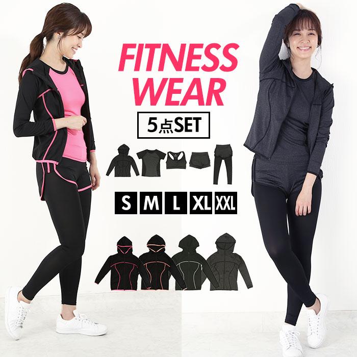 トレーニングウェア レディース セット 通販 上下 5点セット フィットネスウェア 可愛い スポーツブラ トップス ショーツ パンツ レギンス パーカー 透湿 Backyard Family 通販 Paypayモール