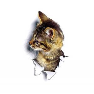 Amazon ケイ ララ トリックアート ウォールステッカー ネコ 猫 茶色のねこ 穴から飛び出る 北欧 モダン かわいい 壁紙シール ウォールステッカー オンライン通販